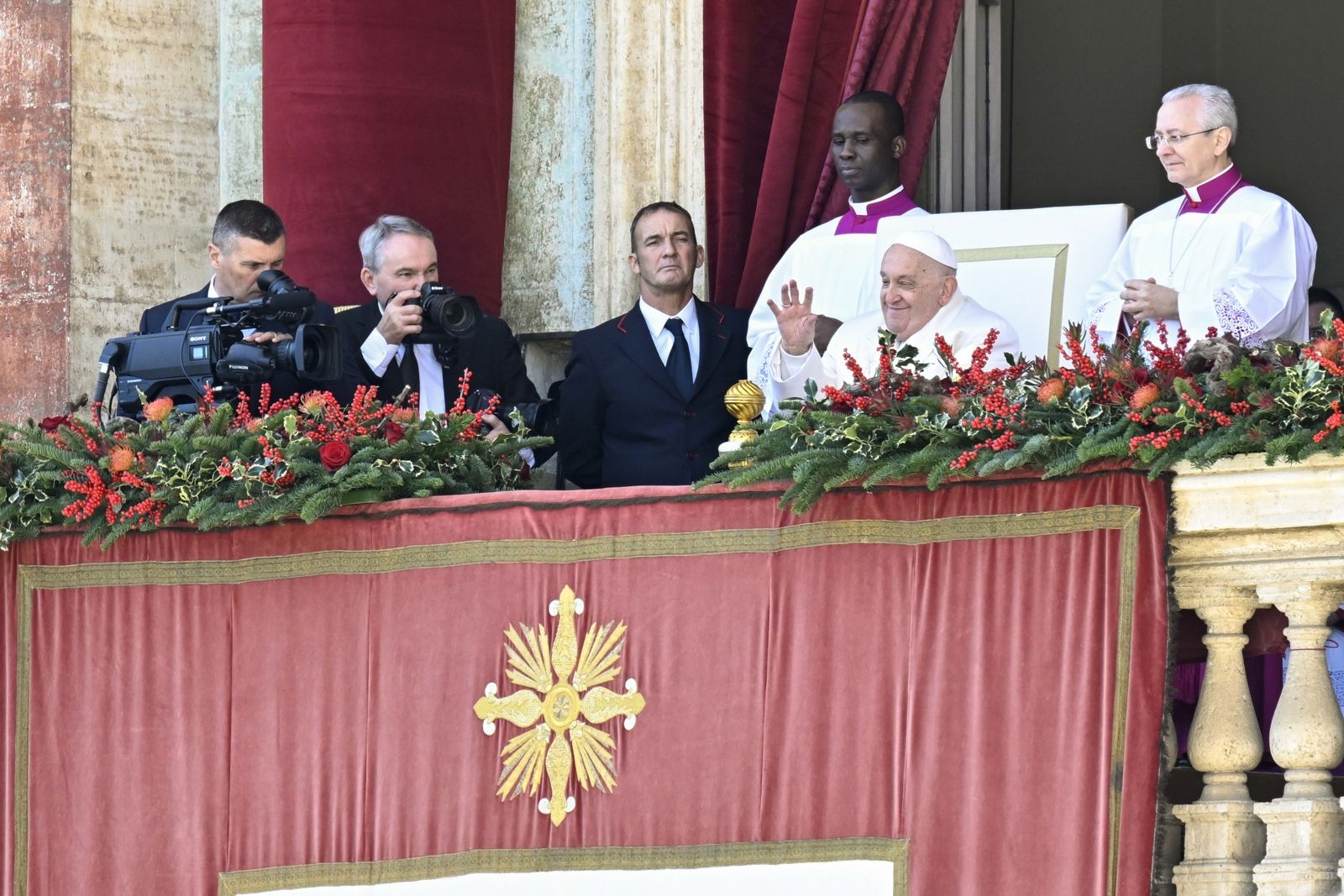 En al balcón de la logia central de la fachada de la basílica de San Pedro, Francisco como suele habitual en su mensaje de Navidad reflexionó sobre los conflictos y males que afectan al mundo ante las cerca 30.000 personas que se acercaron a la plaza de San Pedro.