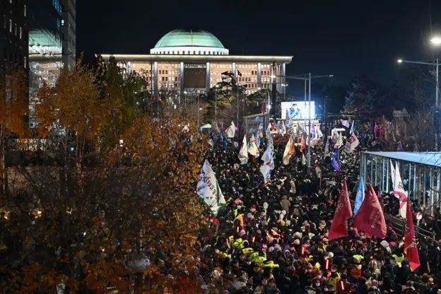 Así, en la noche del 3 de diciembre, apenas minutos después de que el presidente Yoon Suk Yeol apareciera en las pantallas de sus televisores anunciando la imposición de la ley marcial bajo la excusa de "aplastar a las fuerzas antiestatales" que simpatizan con la archienemiga Corea del Norte, miles de ciudadanos se lanzaron hacia la sede de la Asamblea Nacional para expresar su desacuerdo con la medida.