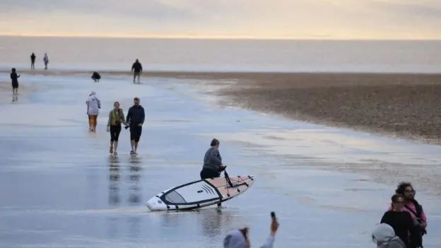 Además de navegar en kayak, los visitantes han instalado sillas de playa y se ha visto a niños en bañador dándose un chapuzón en la nueva masa de agua.