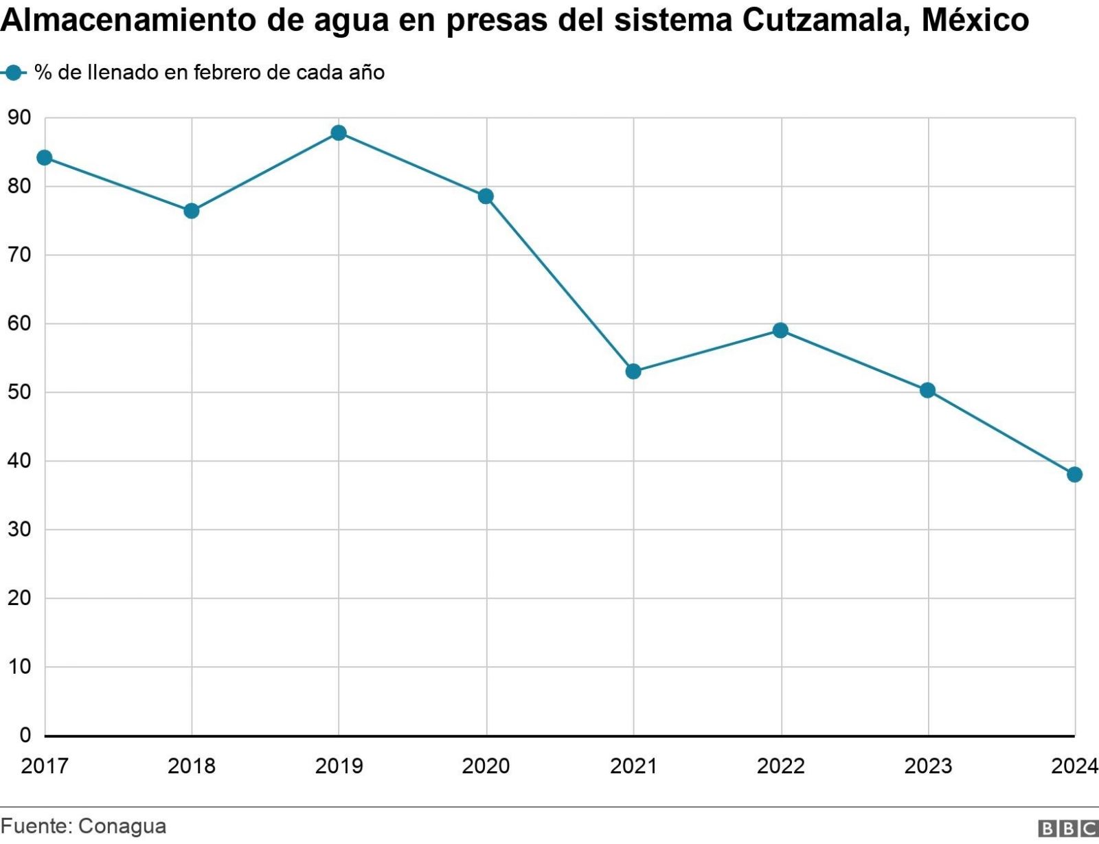 A preguntas de BBC Mundo, el área de comunicación de Conagua aseguró que esta fecha fue "una mala interpretación" de los distintos escenarios que se plantearon en una conferencia de prensa del pasado noviembre sobre el llenado del Cutzamala en base al agua extraída del sistema, que entonces era de 9 metros cúbicos por segundo y que se redujo a 8 el pasado enero.