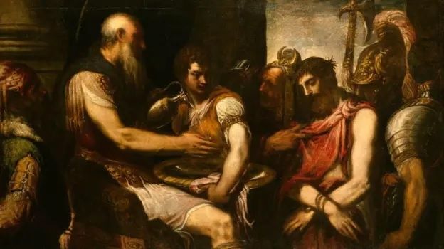 El elemento simbólico que se hizo más fuerte -e hizo que Pilato mereciera ser recordado incluso en la oración del Credo-, el evangelio de Mateo cuenta que, durante el juicio, "viendo que no sirvió de nada", es decir, que los judíos estaban convencidos de la necesidad de la pena capital para Jesús y "que la situación estaba llevando a una rebelión, Pilato tomó agua y se lavó las manos en presencia de la multitud, diciendo: 'Soy inocente de esta sangre. Toda la responsabilidad es tuya!'".