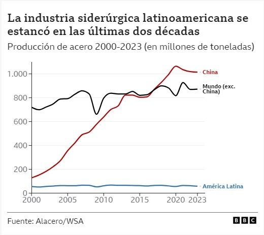 "Entre 2000 y 2023 China aumentó su producción de acero en casi un 700%".
