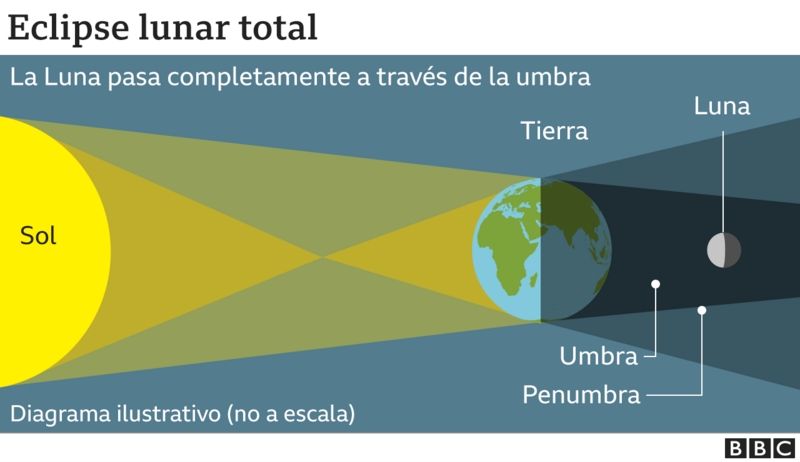 Además, se agrega, "a diferencia de los eclipses de Sol, en los que el horario de las fases del eclipse depende de la posición geográfica del observador, en los eclipses lunares éstos serán los mismos independientemente del lugar de observación".