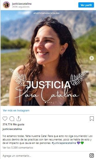 En una cuenta de Instagram llamada “JusticiaxCatalina”, su madre revela detalles de la experiencia de su hija en los dos internados a los que asistió, afirmando que fue víctima de “insultos y faltas de respeto” y que, a pesar de haber denunciado esta situación con la universidad, no se le “escuchó”.