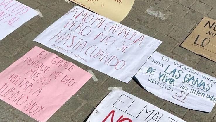 “La vocación no mata, los internados abusivos sí”, “no es normal normalizar el maltrato” o “amo mi carrera pero no sé hasta cuándo” son algunas de las frases que se podían leer en las pancartas.