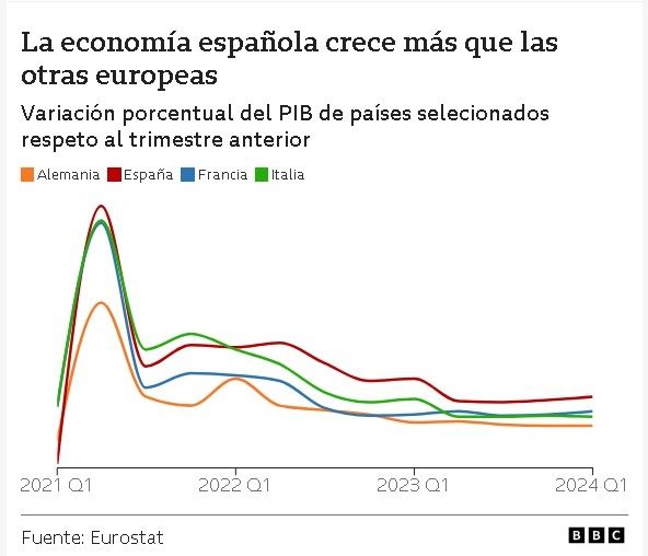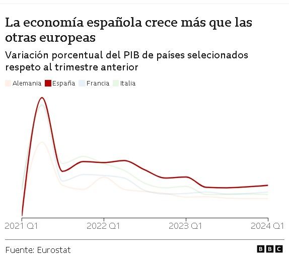 Y las previsiones oficiales apuntan a que el crecimiento español será notablemente superior al de los países de su entorno también en 2024.
