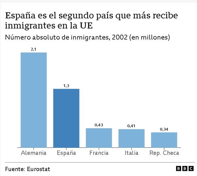 Esto ha convertido a España en el segundo Estado de la Unión Europea (UE) que más inmigrantes recibe, solo por detrás de Alemania.