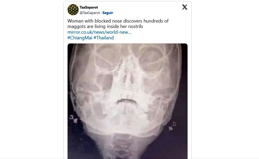 Parece una anécdota inventada con fines de causar asombros, pero es cierta. Ocurrió en Tailandia, donde se realizó el descubrimiento de más de 100 gusanos en las fosas nasales de una mujer.