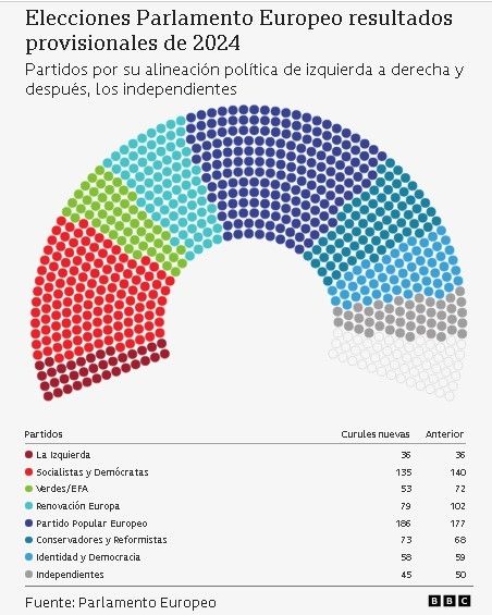 Si bien esta afirmación es cierta, también lo es que el equilibrio de poder en el Viejo Continente se está moviendo del centro hacia la derecha, como demostró la clara victoria en los comicios del conservador Partido Popular Europeo que, según los resultados preliminares, logró 186 escaños de los 720 que componen el PE, frente a los 135 de los socialdemócratas.