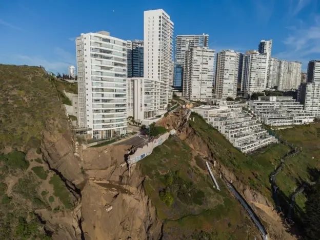 Los edificios de lujo que están en peligro de colapso en la costa de Chile por el aumento de los socavones