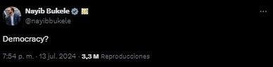 El presidente de El Salvador, Nayib Bukele, recurrió a la ironía para referirse al suceso. "¿Democracia?", preguntó en alusión a la la agresión contra el expresidente republicano.