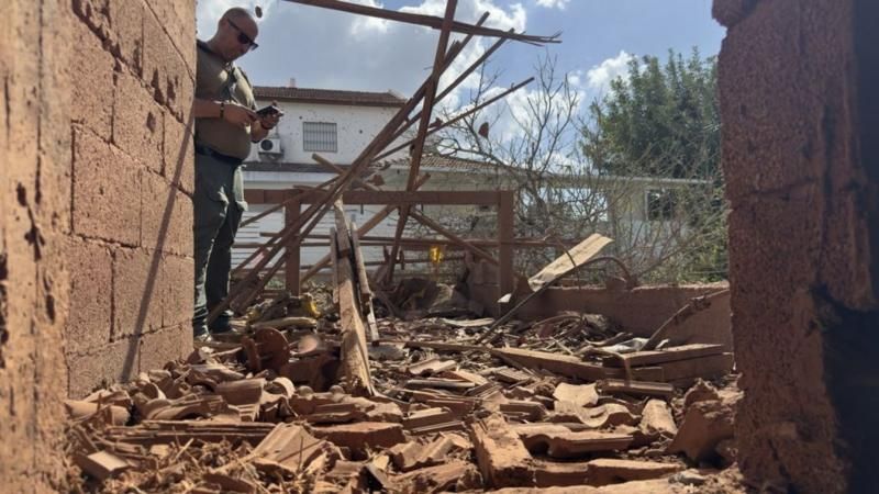 David Yitzhak nos mostró el lugar donde un cohete atravesó el techo de la casa de su familia a la hora del almuerzo el lunes.