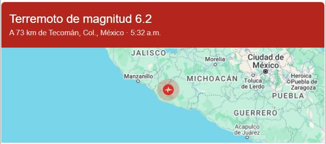 En el transcurso de la madrugada del domingo, el Servicio Sismológico Nacional de México reportó un sismo de magnitud 6.1 en la escala de Richter. El movimiento telúrico se registró a 29 kilómetros al suroeste del poblado de Coalcomán, a una profundidad de 10 kilómetros, según el reporte preliminar.