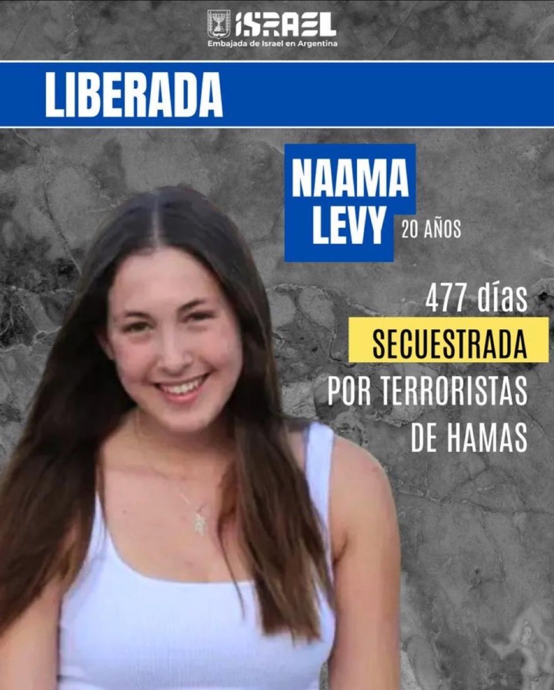 - Naama, regresa a casa después de 477 días de dolor. Nieta de sobrevivientes del Holocausto y activista de la paz.