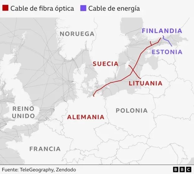 El daño de este cable, que tiene una longitud de 170 kilómetros, es el más reciente en una serie de incidentes en los que cables submarinos que atraviesan la región del Báltico han sido dañados parcialmente o de forma definitiva desde que empezó la invasión rusa a Ucrania.
