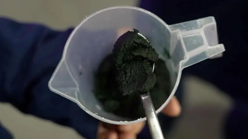 De vuelta en la planta, veo un lodo verde poco apetitoso. Son las microalgas cosechadas a las que se les ha extraído el agua, listas para su posterior procesamiento.