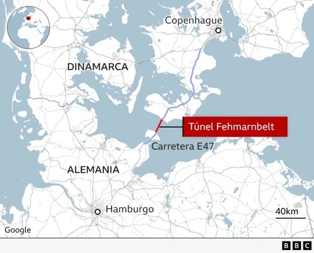 Una vez completado, el trayecto entre Rødbyhavn, en el sur de Dinamarca, y Puttgarten, en el norte de Alemania, durará tan solo 10 minutos en coche o siete en tren, sustituyendo así un viaje en ferry de 45 minutos.