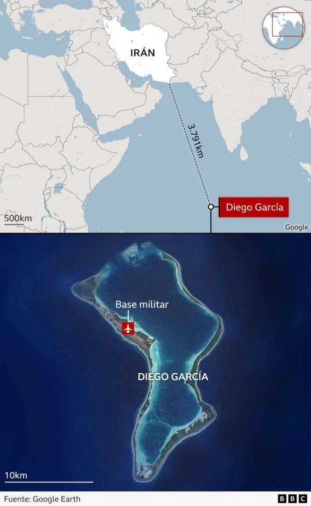 Irán amenazó con bombardear la base, ubicada en la isla de Diego García, un territorio británico en el océano Índico que Reino Unido planea devolver a Mauricio.