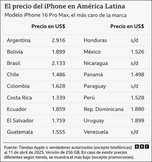 Eso no tendrá impacto en el precio, porque los dispositivos de Apple que se venden en Latinoamérica no pasan antes por EE.UU., y por lo tanto no se les impone el sobrecosto de los aranceles de Trump.