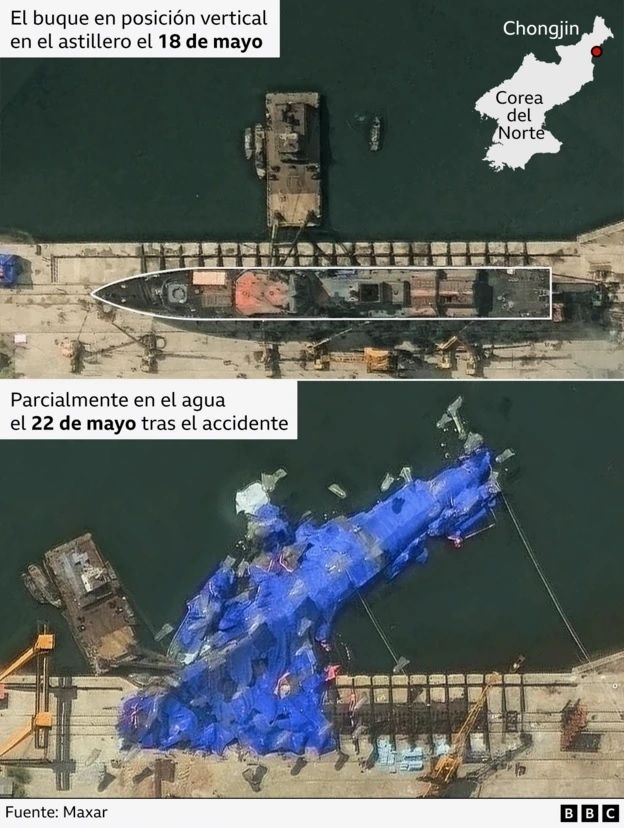 Es la primera vez que se reporta que Corea del Norte lanza uno de sus buques así, pero según le dijeron expertos militares a la agencia Reuters, probablemente se hizo porque el astillero no tenía suficiente espacio o una pendiente para dirigir la popa del buque primero hacia el agua.