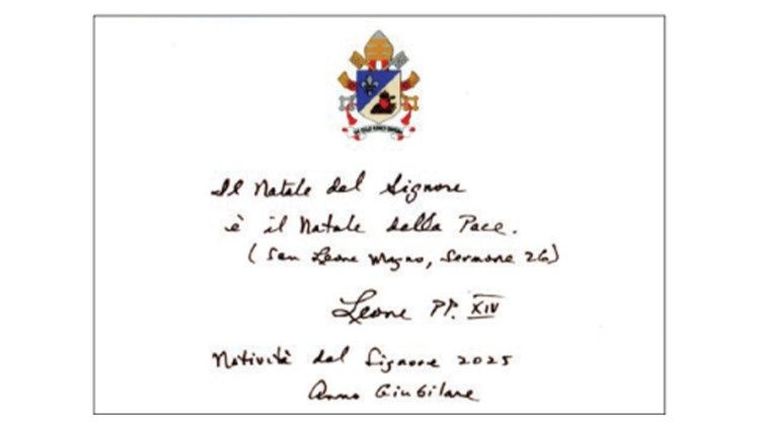 El Pontífice hizo llegar sus primeros deseos navideños mediante una tarjeta oficial elaborada por la Prefectura de la Casa Pontificia, en la que destaca la frase: “La Navidad del Señor es la Navidad de la Paz”. La cita pertenece al Sermón 26 de San León Magno, primer Papa que llevó ese nombre y una de las figuras doctrinales más relevantes del cristianismo antiguo. La imagen que acompaña el mensaje reproduce un mosaico del artista italiano Alberto Salietti, realizado en 1955 para el apartamento pontificio.