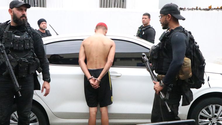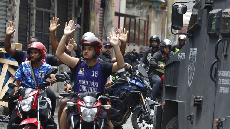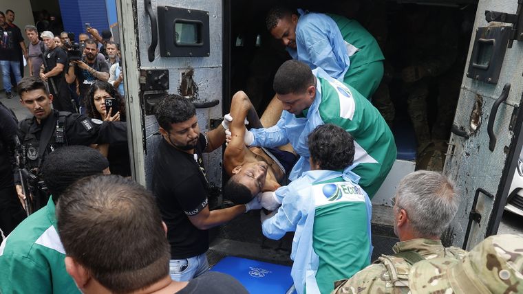 La Policía de Río de Janeiro trasladando a dos capturados durante un megaoperativo en dos favelas