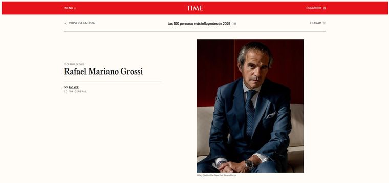 Montaje MDZEn un año donde la política y el deporte argentino suelen acaparar los titulares internacionales, la revista Time ha sorprendido al elegir a un diplomático de carrera como el argentino más influyente del mundo en 2026. Rafael Mariano Grossi, titular del Organismo Internacional de Energía Atómica (OIEA), integra la exclusiva lista de los 100 líderes globales, compartiendo espacio con jefes de Estado y figuras de primer nivel mundial.