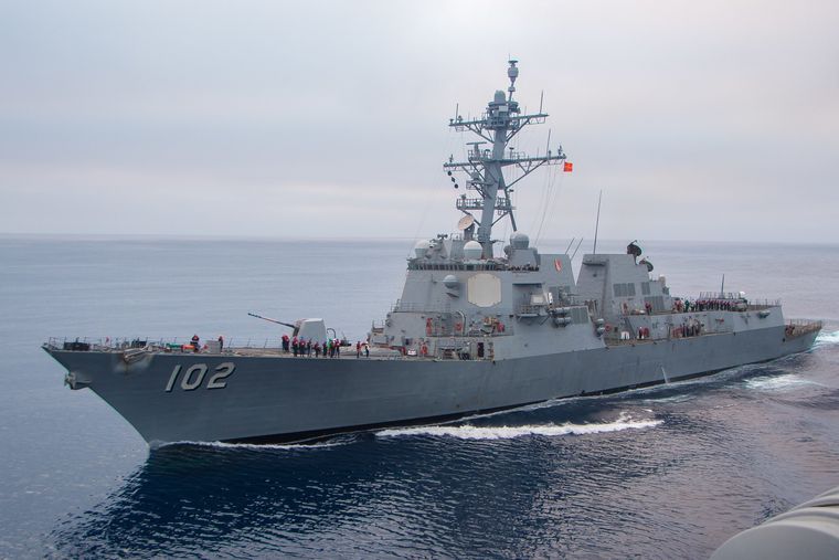 - USS Lake Erie: crucero de misiles guiados de la clase Ticonderoga, con capacidad para unos 400 tripulantes. Está equipado con lanzadores verticales MK 41 desde los que puede disparar misiles Tomahawk para ataques a tierra, Standard para defensa antiaérea y Asroc para operaciones antisubmarinas. También cuenta con un cañón naval de 5 pulgadas y sistemas de defensa de corto alcance, lo que le otorga gran versatilidad en combate. Ha sido empleado en pruebas de interceptación de misiles balísticos, consolidándose como una pieza clave dentro del escudo antimisiles de la Marina estadounidense.