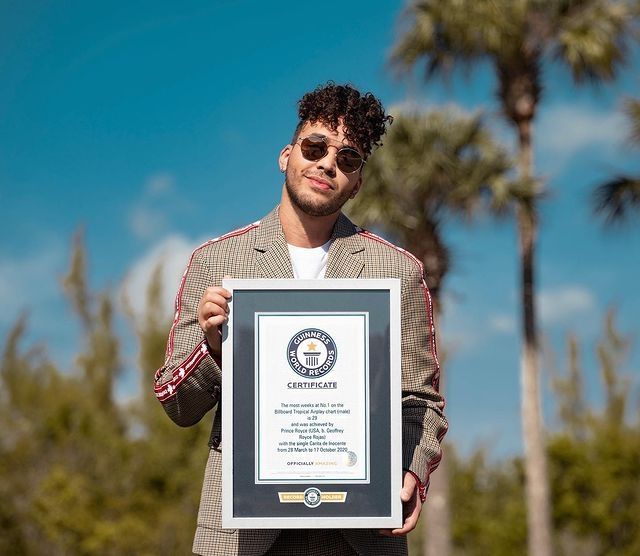 El compositor, productor e intérprete Prince Royce ha resultado merecido ganador de un reconocimiento Guinness World Records luego de que su canción “Carita de inocente” ostentara la mayor cantidad de semanas en el número uno de la lista Billboard Tropical Airplay.