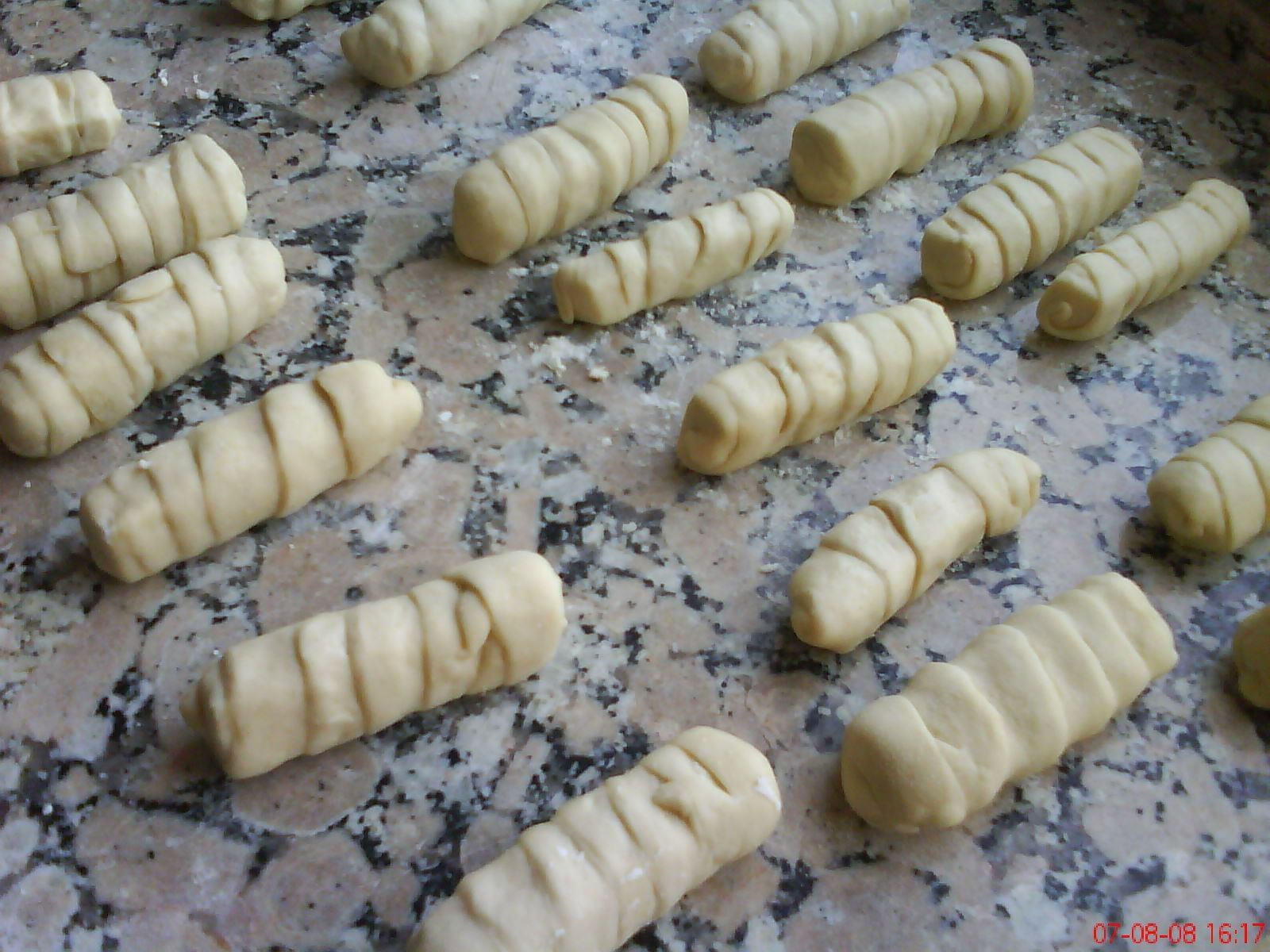 4. Tomo los bastones de queso y los envuelvo en las tiras de masa.