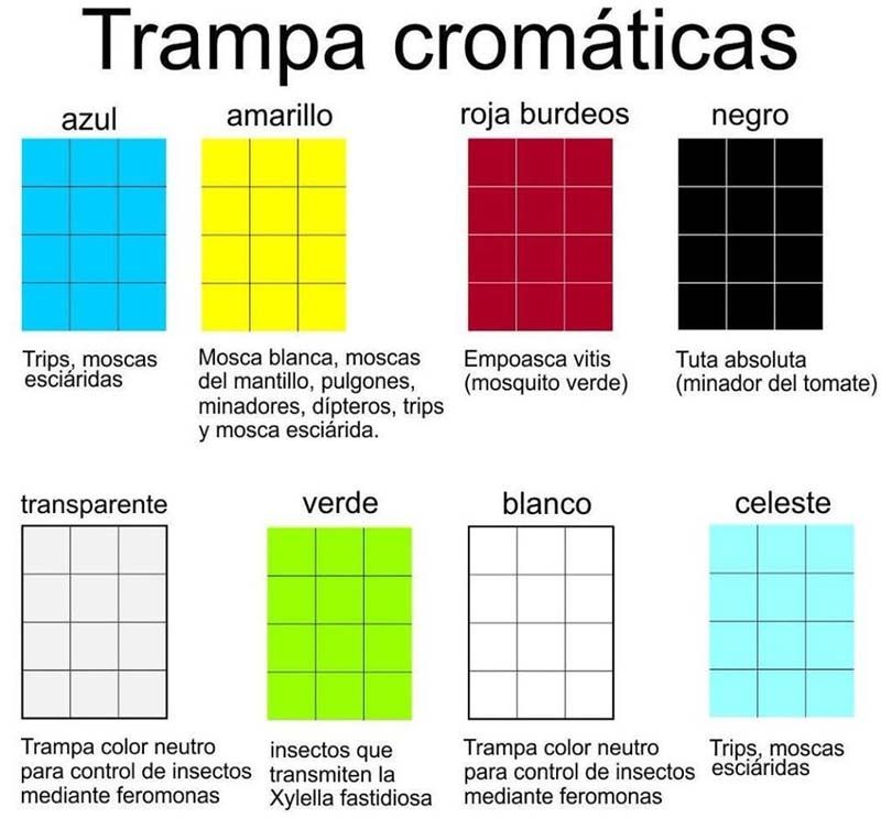 Trampas cromáticas: colores que se deben utilizar según la plaga que se quiera combatir. Foto: Infoagro