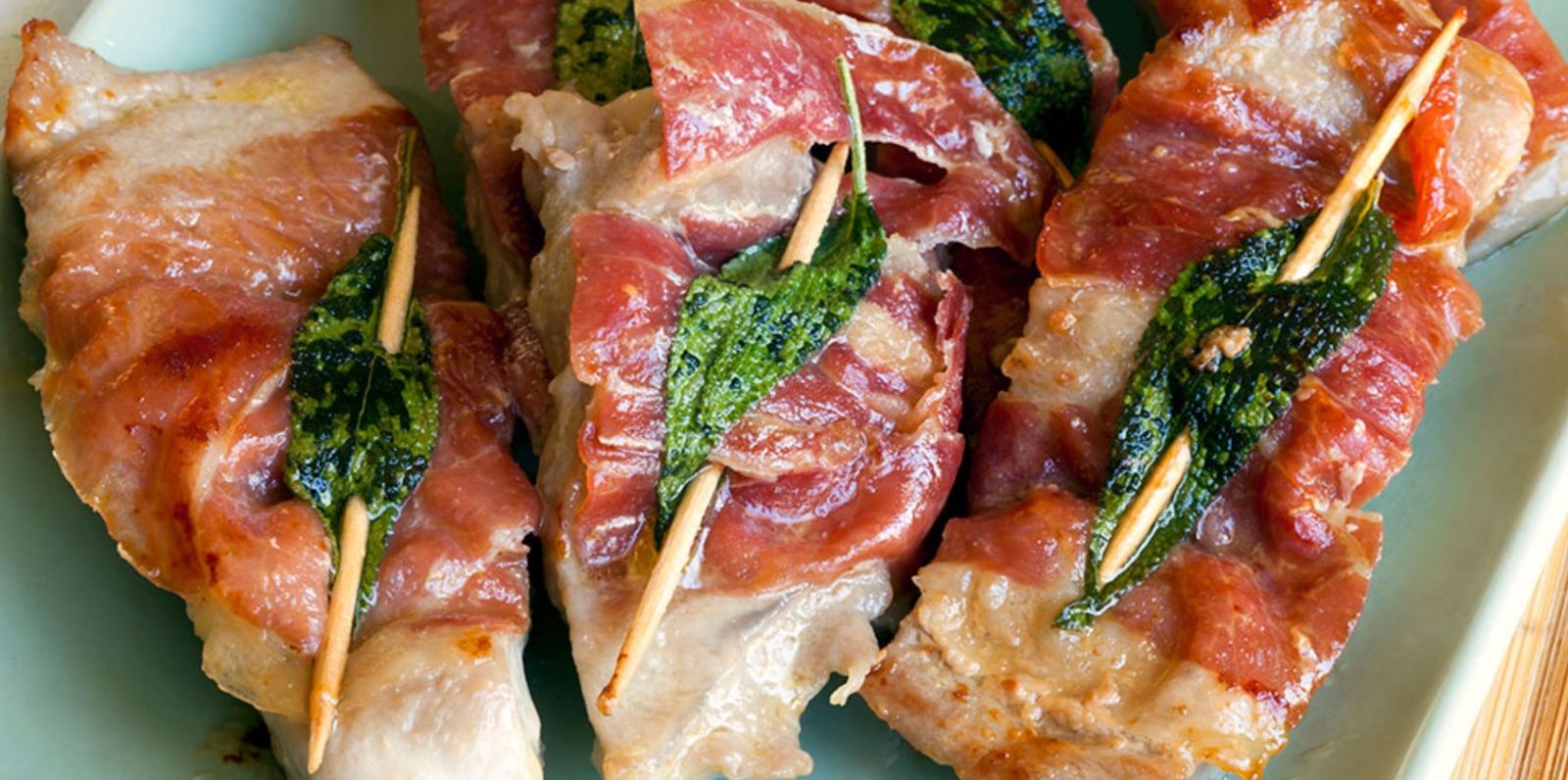 Saltimbocca a la romana, es un plato típico de la gastronomía italiana, que consiste en una preparación de carne de ternera con prosciutto, salvia y vino blanco.