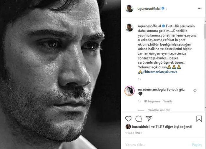 "Sí... he llegado al final de otra aventura. En primer lugar, me gustaría agradecer a mis productores, directores, actor amigos, el perdurable equipo de plató, la gente de Adana, a la que amo con todo mi corazón, y nuestro público que nunca nos ha brindado su apoyo. Nos vemos en otras aventuras”, fue el mensaje que Ugur Günes publicó en sus redes sociales tras emitirse este episodio.