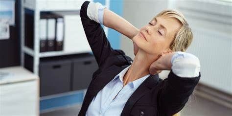 1. Relajar el cuello: El cuello es una de las primeras partes del cuerpo donde se perciben las consecuencias físicas del estrés. En él se concentra una gran cantidad de tensión muscular. Para empezar, inclina la cabeza hacia adelante y atrás, hacia un hombro y al otro. Luego, haz giros con la cabeza como si estuvieses tratando de hacer círculos con la nariz.