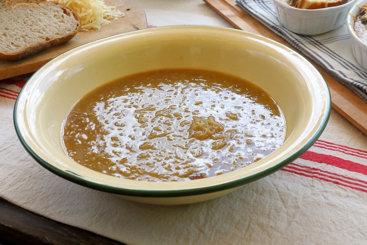 Sopa de cebolla casera estilo francesa en 4 pasos