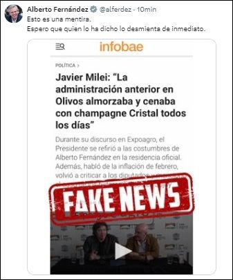 El sitio Infobae, incluso, tituló su nota con este textual, a lo que el propio Fernández respondió a través de sus redes sociales.