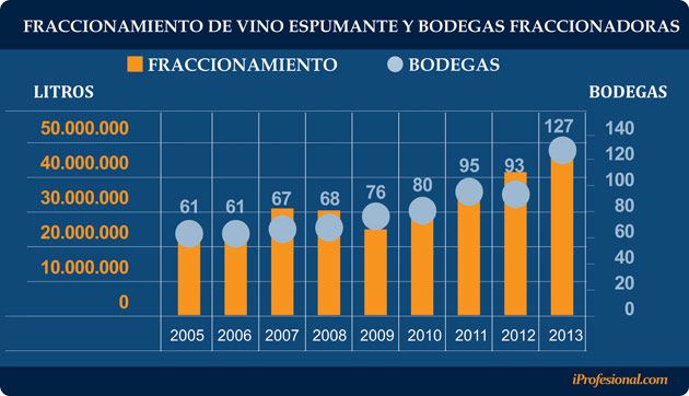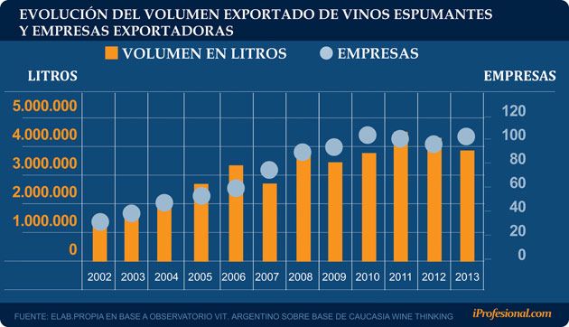 Según un informe de la Corporación Vitivinícola Argentina (COVIAR), el número de establecimientos que comenzaron a elaborar espumantes se disparó en los últimos años: mientras que en 2006 se contabilizaban 62 bodegas, en 2013 se registraron 127, lo que implicó un salto del 105%.