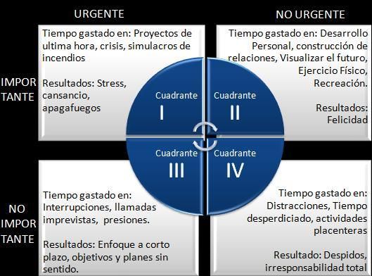 5. Mide y corrige: Para medir el éxito de nuestros nuevos hábitos, es imprescindible comparar nuestro plan con la realidad. Saber con claridad dónde te encuentras y dónde habías imaginado encontrarte al inicio de tu plan de acción. Es importarte entonces, que desarrolles un proceso formal de evaluación, para ello te recomendamos la matriz desarrollada por Steven Covey: agarra una hoja (papel o Excel) y divídela en cuatro cuadrantes: el eje vertical lo dividirás en Importante - No Importante (va o no con mi propósito) y el eje horizontal lo dividirás en Urgente - No Urgente (requiere o no atención inmediata), de modo que te quedará la siguiente matriz de cuatro cuadrantes: