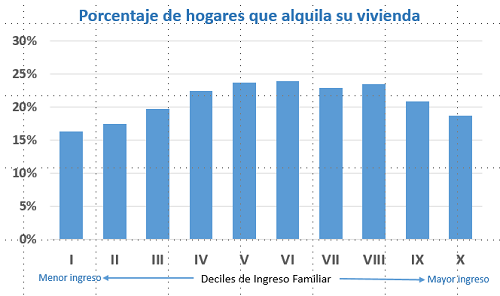 En un país de ingreso relativamente alto, como Chile, se alquila menos que en un país de ingreso relativamente más bajo, como Ecuador.
