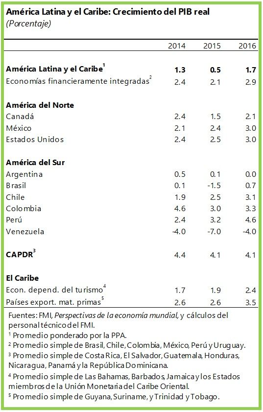 Las proyecciones de crecimiento para América Latina y el Caribe se han revisado aún más a la baja —al 0,5 por ciento en 2015— lo cual supone una desaceleración de la actividad por quinto año consecutivo.
