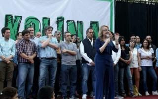 Alicia Kichner, Daniel Scioli, Máximo Kirchner, el "Cuervo" Larroque en el acto del partido Kolina en Escobar. Fue en un centro de Conciencia y Ciencia, dedicado a la reflexión.