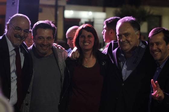 Carlos Tomada, Víctor Santa María, Lorena Pokoik, ascendente legisladora kirchnerista, Eduardo Valdés y Mariano Recalde en la inauguración de un comité en la Comuna 10.