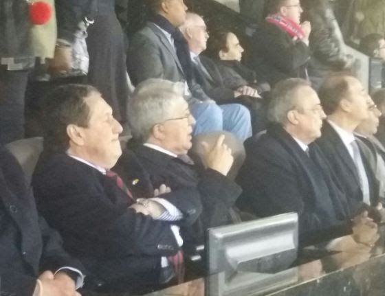 Ramón Puerta con los Presidentes Florentino Pérez y Enrique Cerezo del Real Madrid y Atlético Madrid, en el Estadio Vicente Calderón en oportunidad del Derby de Madrid.