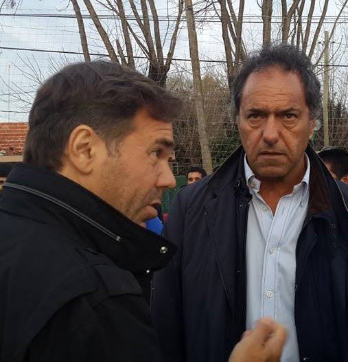 Alberto Pérez y Daniel Scioli ayer en Gorina, festejando el día del Niño.Su anfitriona fue la concejala Florencia Saintout, que horas antes había llevado a La Plata a Máximo Kirchner, Wado de Pedro y el "Cuervo" Larroque.