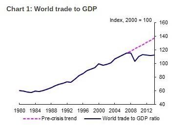Una idea que dominó la reunión del G-20 fue la necesidad de impulsar el comercio mundial y apoyar la "globalización". Como he expuesto con frecuencia, el crecimiento del comercio mundial ha sido pésimo y es una importante característica de la Larga Depresión desde 2009.
