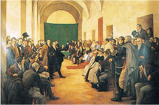 Cuadro: "CABILDO ABIERTO DEL 22 DE MAYO DE 1810". Autor: Pedro de Subercaseaux / Óleo. Pintado en Chile en 1908, por encargo de Adolfo Carranza, con motivo de la preparación de la celebración del Centenario de la Revolución de Mayo que tuvo lugar en 1910. En la actualidad el cuadro se conserva en el Museo Histórico Nacional.