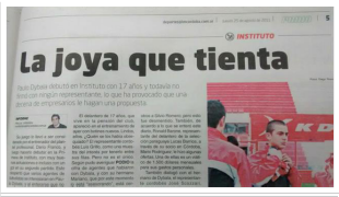 Marcos Villalobo, periodista del diario La Mañana de Córdoba, fue quien tituló en el año 2011: "La joya que tienta". El periodista en diálogo con La Nación comentó: "Al verle la pegada, llamaba la atención. Era un diamante en bruto, y empecé a poner en los títulos de las notas La Joya. A los hinchas de Instituto les gustó, fundamentalmente en redes sociales, y se popularizó. Paulo me contó en una entrevista que le hice en El Gráfico que en Palermo ya lo llamaban así, pero que, al llegar a Turín, todos sus compañeros le dicen la Joya".