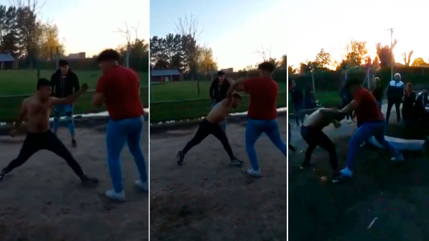 De acuerdo a las imágenes captadas por un particular a través de un teléfono celular que se viralizó en las redes sociales, Aranda estaba con el torso desnudo y un pantalón oscuro, y el otro muchacho, de una contextura física mayor, vestido con una remera roja y jeans celeste; mientras que los rodeaba varios chicos que, a los gritos, presenciaron cómo se golpeaban.