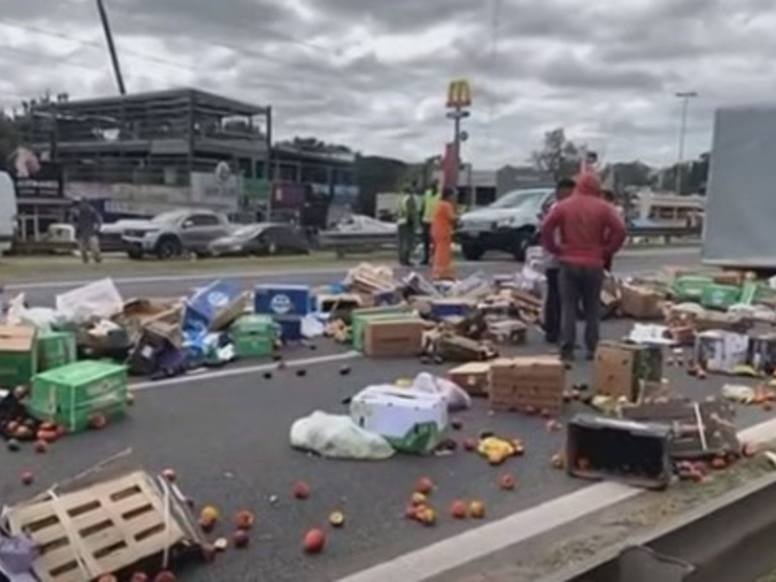 Volcó un camión en pleno Acceso Sur: cortes y demoras