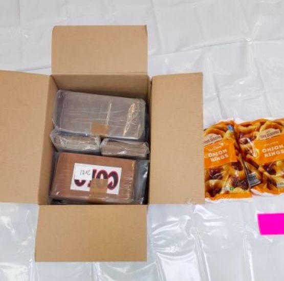 Un cargamento de cocaína con un fue descubierto en una carga de aros de cebolla en Coquelles, Francia, El valor aproximado de la droga traficada es de 44 millones de dólares.